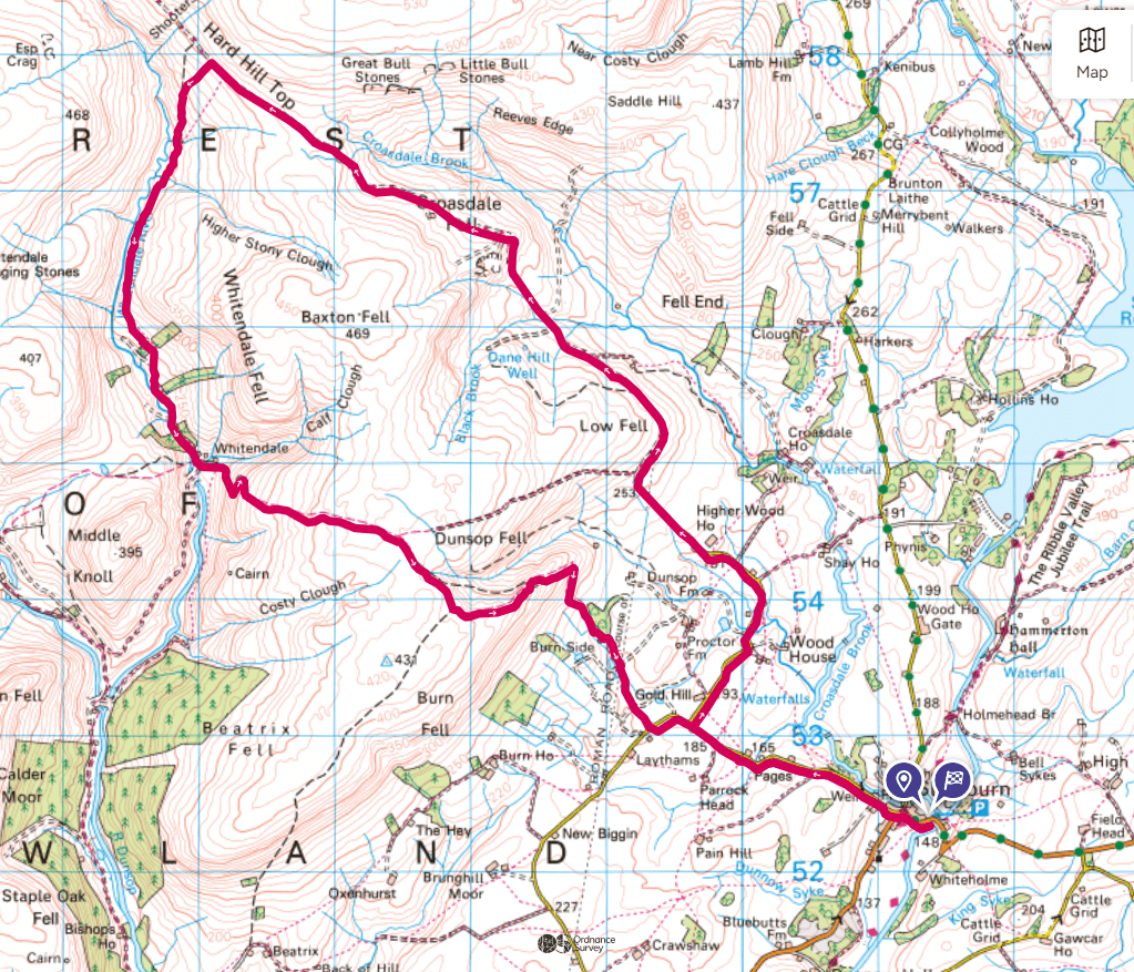 The Bowland Trail Half follows the same start and end as the Ultra, using aid station 1 at Whittendale farm to back to Slaidburn. The route is unmarked but will have marshals on the course keeping track of runners and offering help where needed.